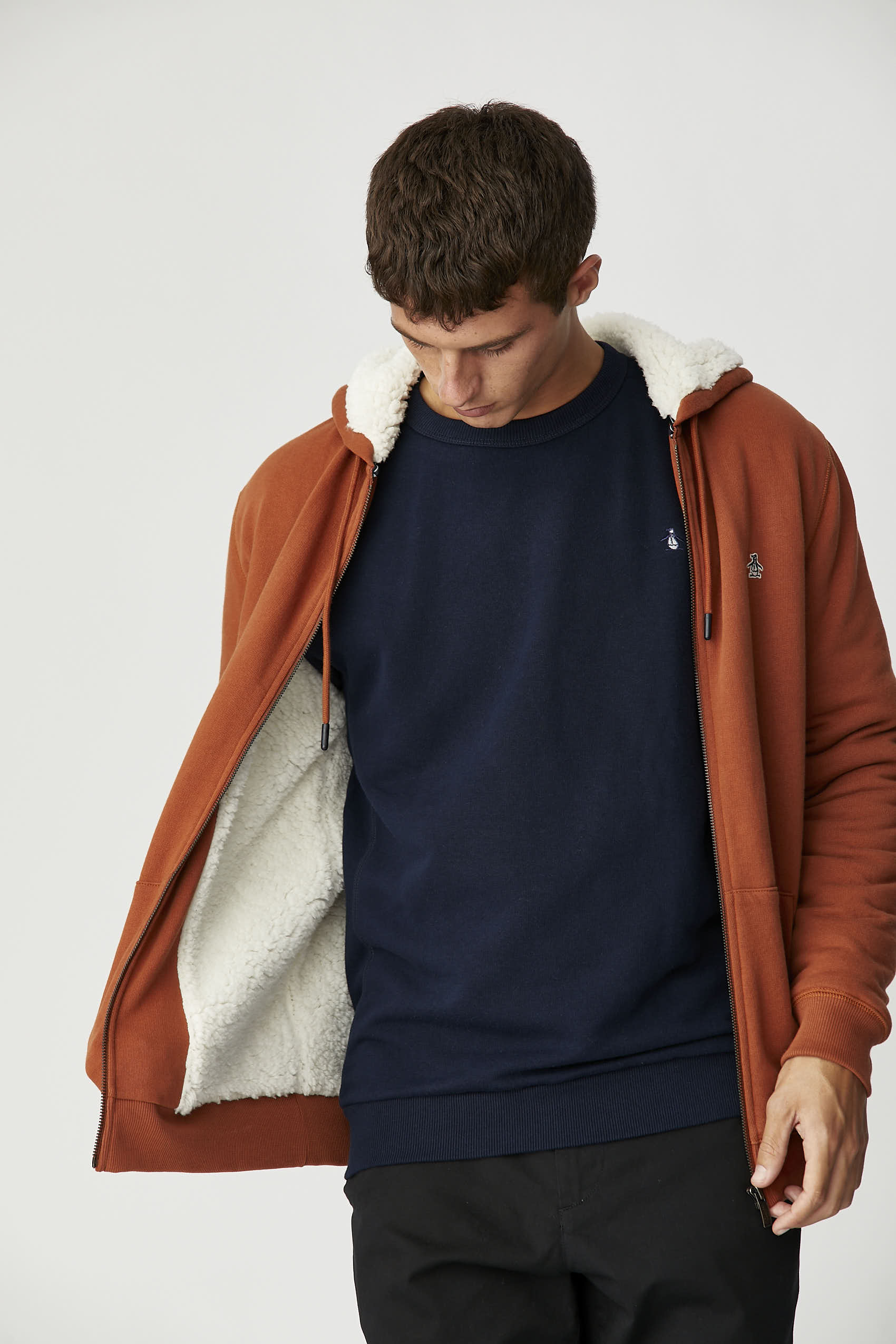 Buzo realizado en rústico color block, con un cuarto de cierre de largo, cuello alto y bolsillos con cierre. Delantero con rayas Paneaux tejidas en hilo color de varios colores, manga raglan y cuello en tela lisa a contra tono. Logo parque pingüino bordado a dos colores aplicado en pecho. Producto importado.