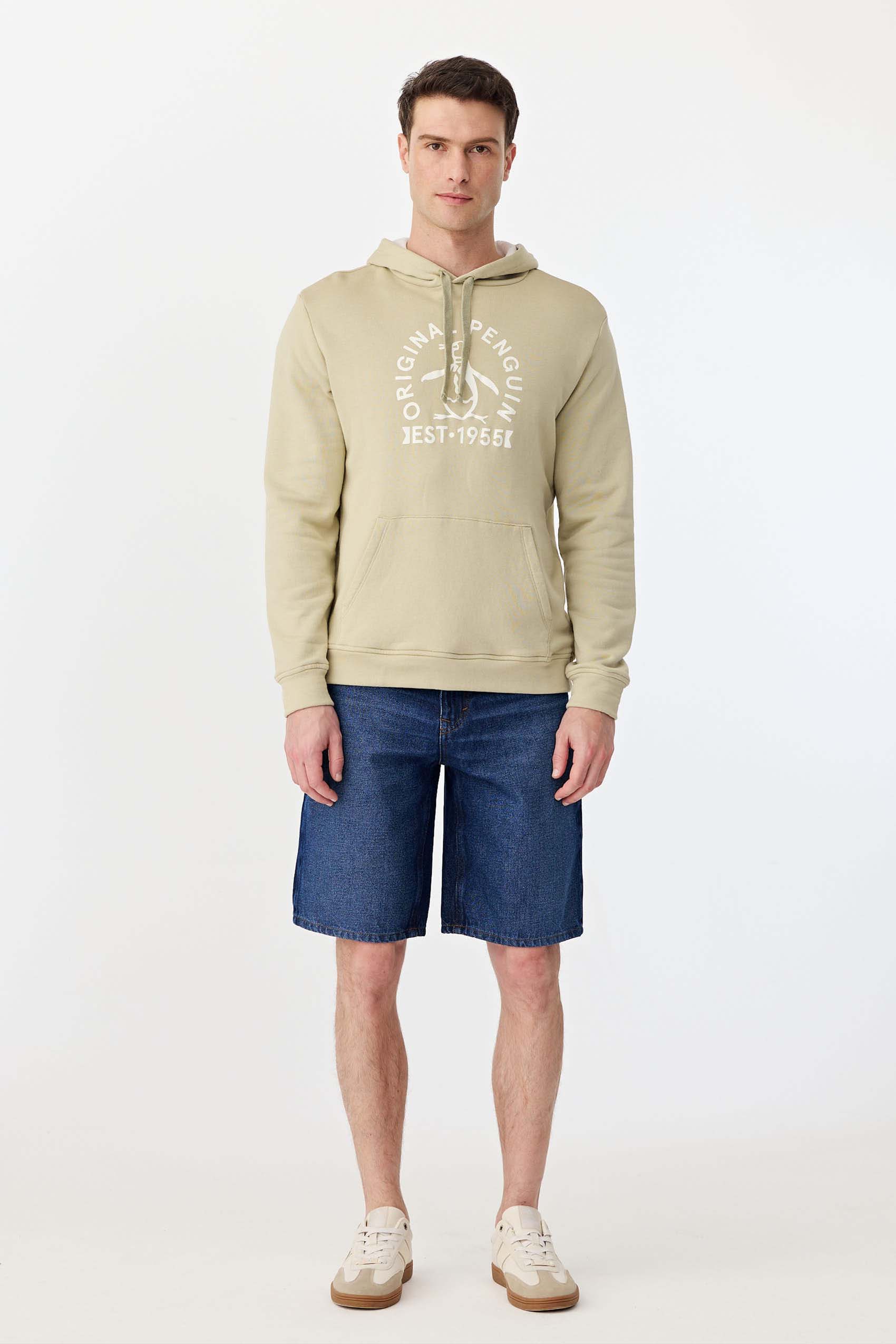 Buzo realizado en rústico con capucha y estampa logo marca central a contratono. Puños de manga de rib al tono. Tela importada.